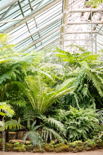 Tropical Greenhouse Glasshouse With Evergreen Plants Ferns
